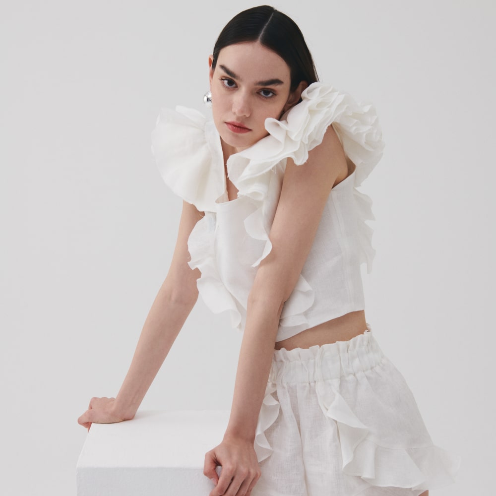 Cristina Oprea și-a imaginat UNDERFLIRTY ca o celebrare a puterii feminine învăluită în pasteluri și posibilități infinite, o lume în care fiecare femeie este liberă să își îndeplinească cele mai îndrăznețe visuri. Cu o viziune optimistă și o abordare plină de pasiune, Cristina și-a dorit să transpună esența feminității în piese care îmbină eleganța, naturalețea, și spiritul liber al femeilor de toate vârstele.